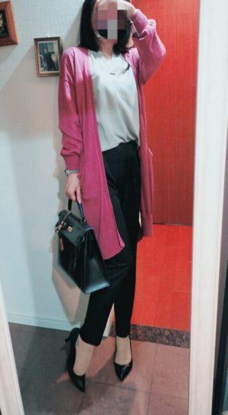 くすみピンクのロングカーデ